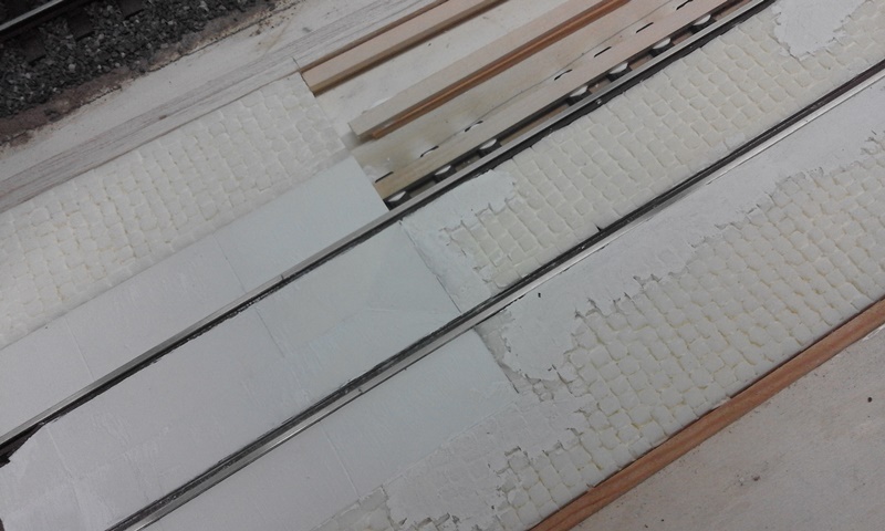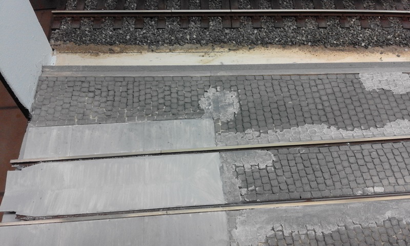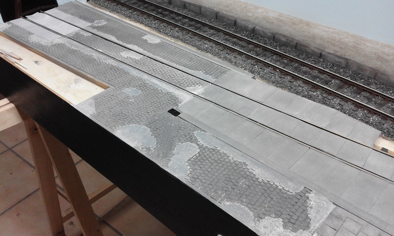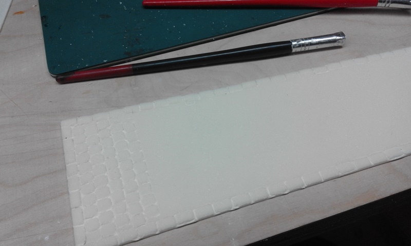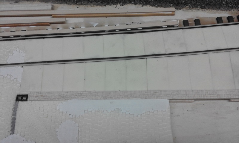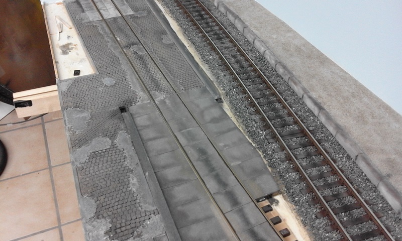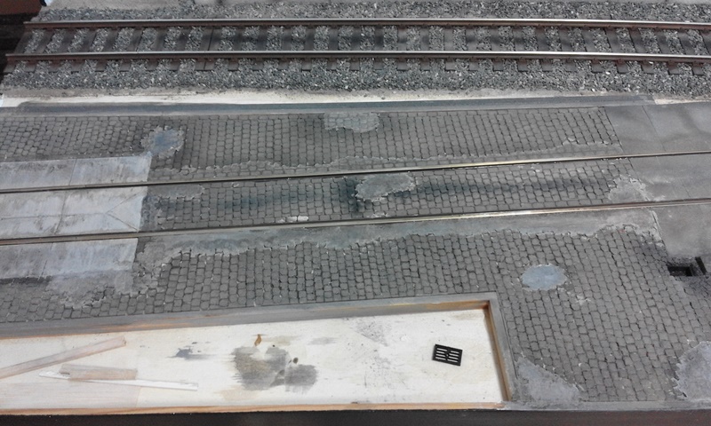 NEU 23.11.2016 Ich habe mit dem Anschluss "Öllager" begonnen. Der Anschluß befindet sich im linken Anlagenteil. Dargestellt wir der Einfahrbereich mit einem Lagergebäude, einer Mauer und einem Tor. Links vorne wo die "Fundamente" zu sehen sind, wird das Gebäude angeschnitten dargestellt, das dann auch die Durchfahrt durch den Hintergrund und zum Hauptgleis verdecken soll. Das Lagergebäude wird aufgeschnitten dargesellt mit Inneneinrichtung. Der eigentliche Bereich wo die Tankwagen entleert werden wird nicht dargestellt. Einzig die Betonauffangwanne wenn mal was auslaufen würde habe ich zum Teil dargestellt, später wenn das Gebäude steht sieht man so gut wie nichts davon. Der Bereich ist aus Polystyrol und Kapa Platten entstanden, in die Platten lässt sich eine Pflasterstruktur mit einem Stempel aus einem alten Pinsel sehr schön darstellen. Das Ganze habe ich mal farblich grundgestaltet...das Pflaster wird noch mit Steinstaub ausgefugt...