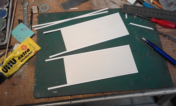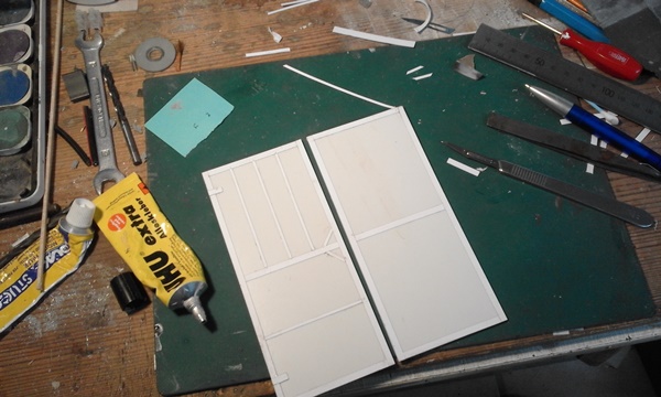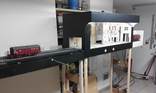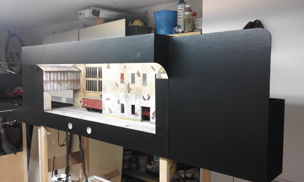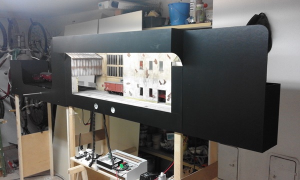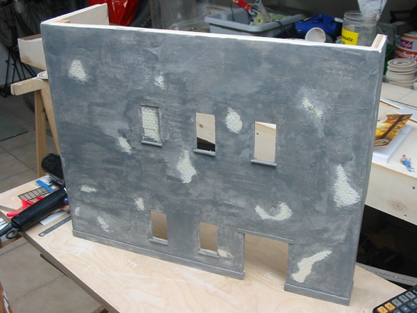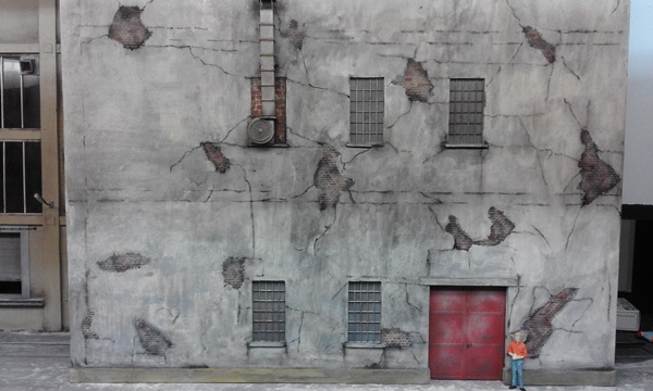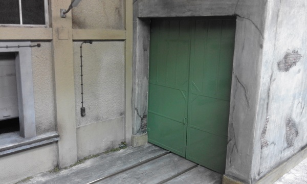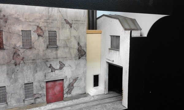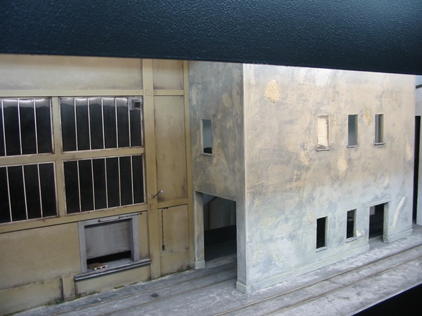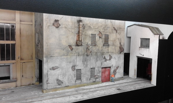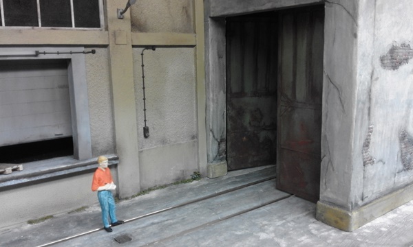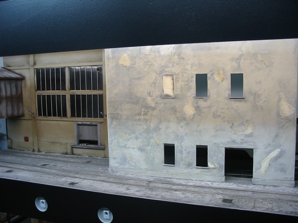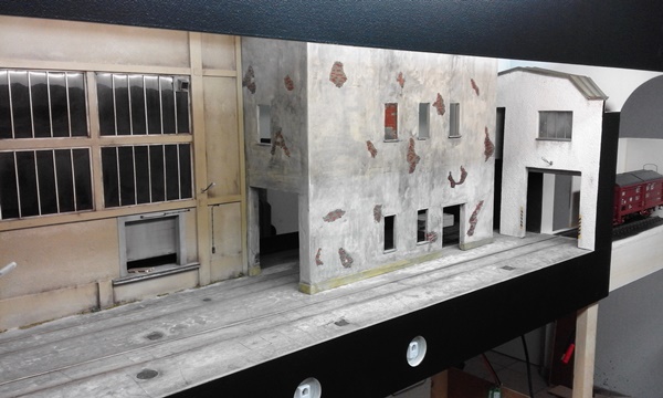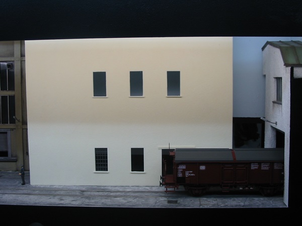 aktualisiert 30.Dezember2015 NEU 30. Dezember 2015 Das vierte Gebäude ist nun schon ziemlich weit, Fenster eingesetzt (Addie Spur0), die Fasade wurde farblich gestaltet und verwittert. Zwei Tore wurden gebaut, aus einer einfachen Polystyrolplatte auf der Streifen aus etwas dickeren Papier aufgeklebt wurden und das Ganze wurde noch farblich behandelt. Das letzte Gebäude wurde begonnen, es schliesst die noch offene Lücke...es geht langsam auf die Zielgerade :-)
