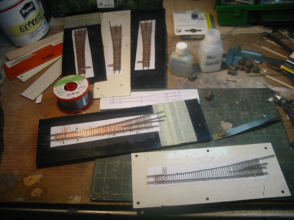 5 Weichen die im Selbstbau entstehen, diese benötige ich für eine Siding und Anschlußgleise
