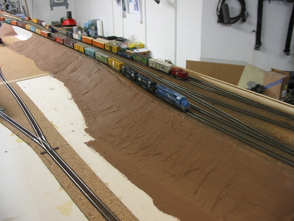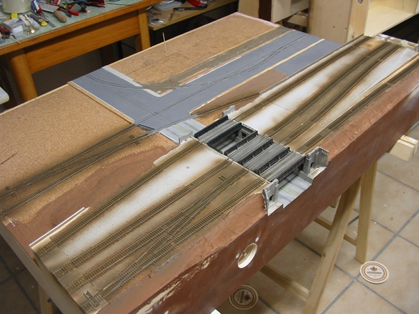 Gleise wurden mit dem Airbrush lackiert, demnächst geht es ans Schottern...