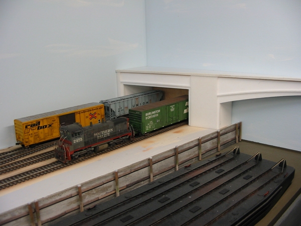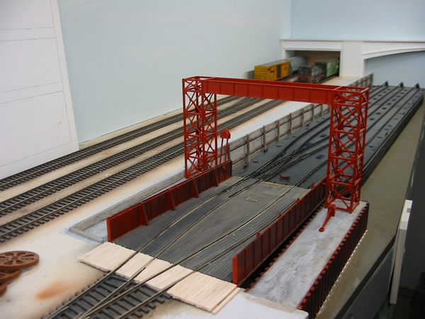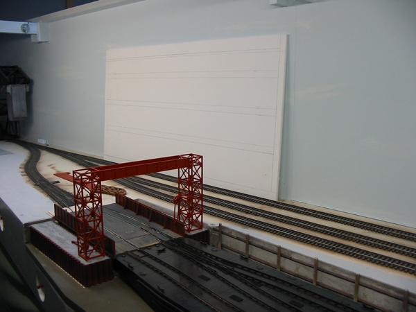 Die Kaimauer wurde aus Styrodur, Balsaholz und Rundhölzer gebaut, desweiteren entsteht die Strassenbrücke die die Einfahr zum Schattenbahnhof verdecken soll. Eine Styrodurplatte für das erste Hintergrundgebäude steht bereit...