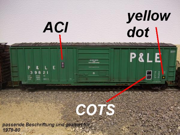 der Wagen ist für den gewünschten Verwendungszweck von der Bauart her geeignet, für den gewünschten Zeitraum passend beschriftet und glaubhaft für das dargestellte Alter und Verwendungszweck gealtert passende Beschriftung umfasst z.B. Wiegedatum, ACI (automatic Car Identification - ), COTS (Wartungsanschriften), yellow dot für Loks und cabooses gelten prinzipiell die selben Anforderungen