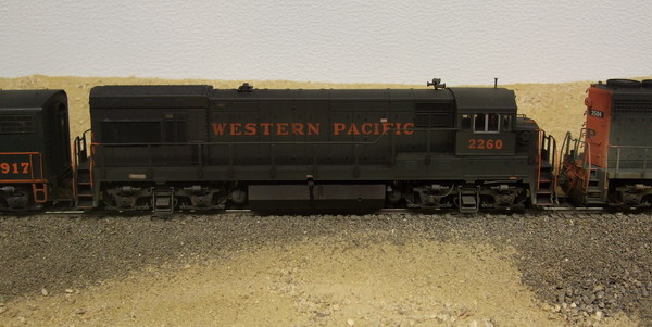 "San Jose Manifest" bestehend aus U23B #2260, F7A #917 und GP40 #3504 Vorbildentsprechende Bespannung für 1978-79 für den WP San Jose Turn nach Milpitas zum Ford plant. Die #917 gehörte zu den "Fab Four" die letzten F-Units die in Californien unterwegs waren, die #917 zusammen mit der #921 bis zur Übernahme durch die UP 1982...
