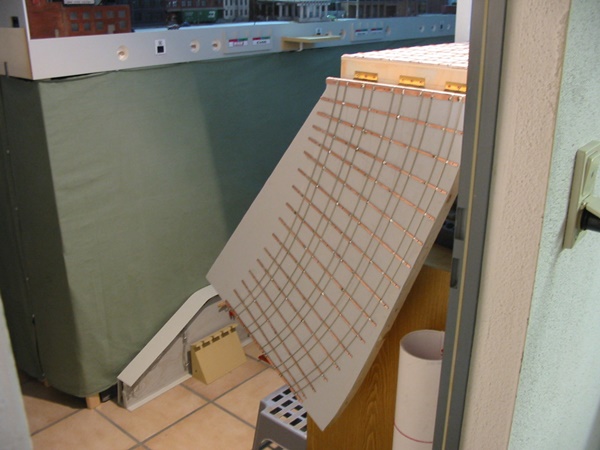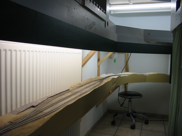 in meinem Anlagenraum auf einer Höhe von 70cm aufgebaut. Die Anlage kann im Sitzen von einem Rollhocker aus bedient werden,