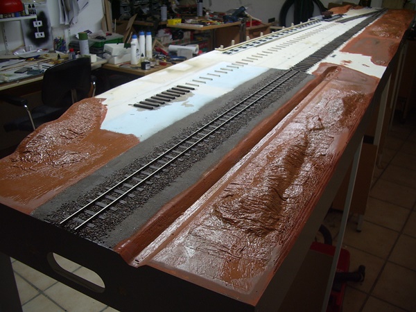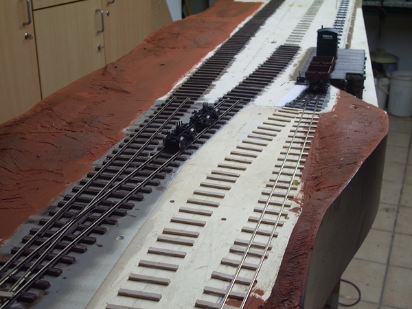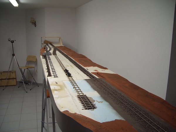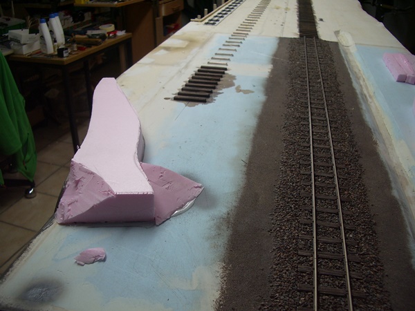 Nun ging es mit dem Gleis- und Landschaftsbau weiter. Aus Styrodur wurden Landschaftskonturen gestaltet