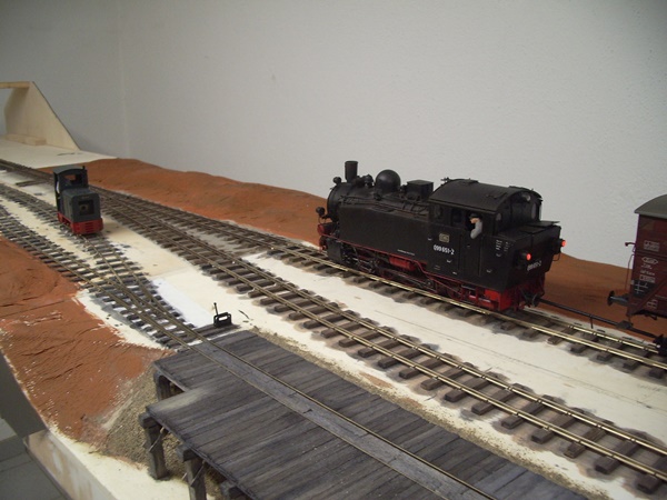 über ein Dreischienengleis einbinden. Dafür wird dann auch der Schattenbahnhof Staberg