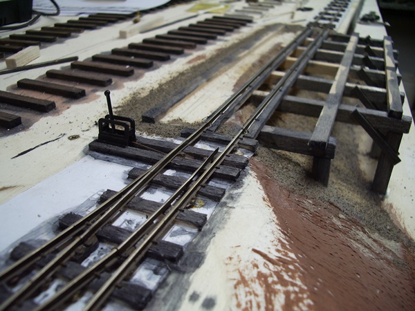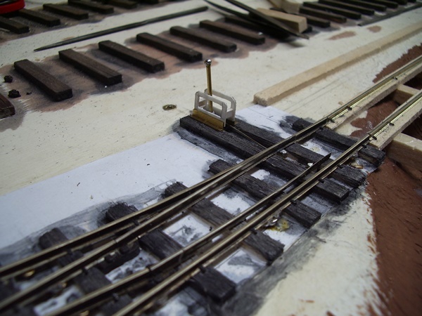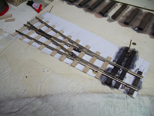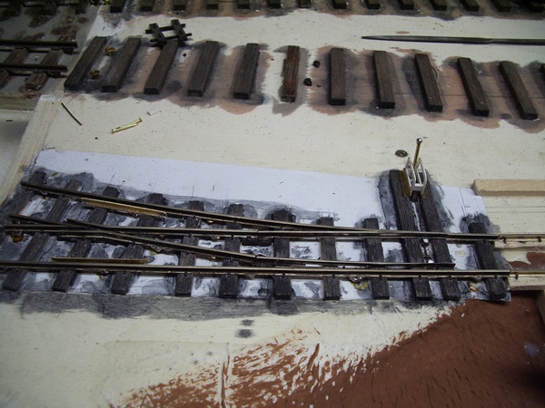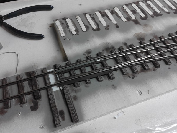 Das hinter der Weiche liegende Gleis wurde entfernt, die Weichenbetätigung aus dem Hause Outbus wurde eingebaut,