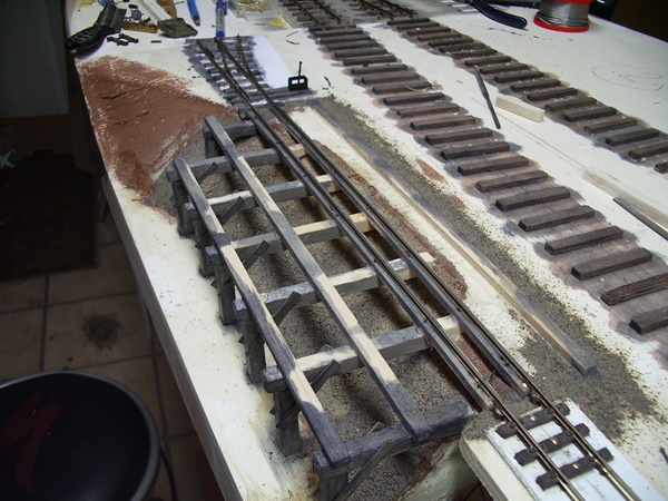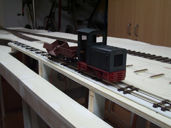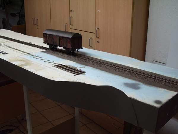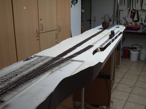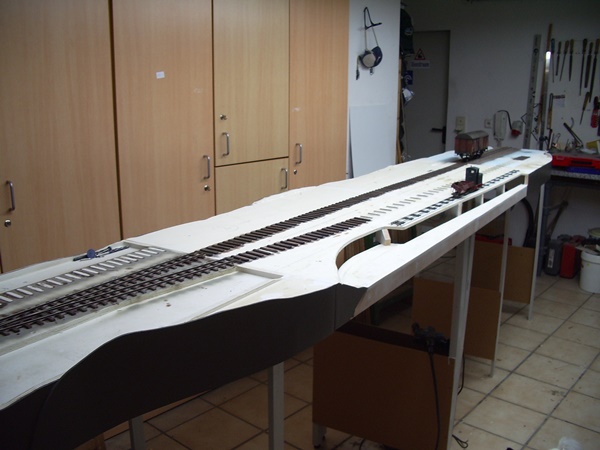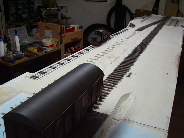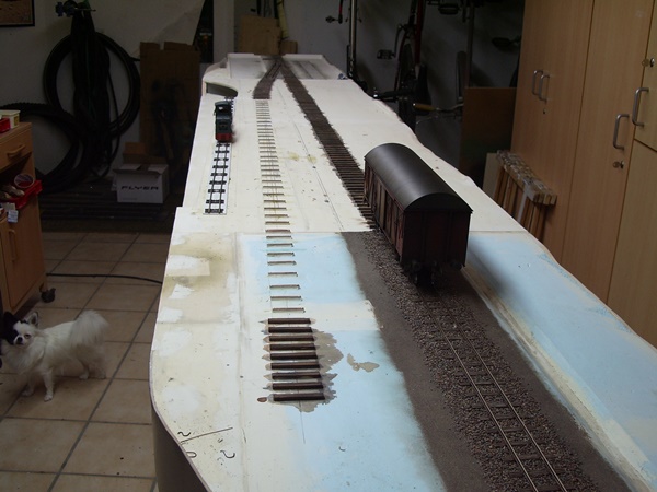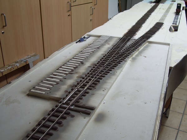 gebaut, im Bereich auf dem linken Segment vor der 1e Weiche wird es eine Ausweiche mit zwei Weichen geben.