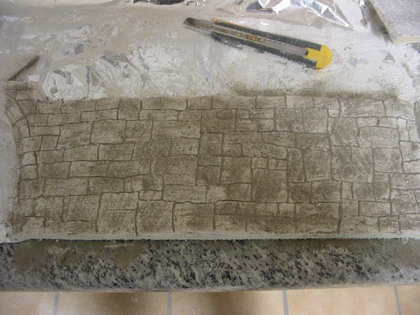 habe ich die Fugen geritzt...die Fugen mit Fugenbreit verfugt und die Steine mit Wasserfarbe farblich