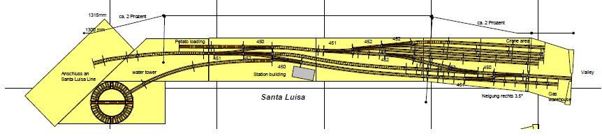 AKTUALISIERT 13. September 2015 Da Santa Luisa ein Endpunkt ist wird eine Drehscheibe benötigt, hier der Aktuelle geänderte Plan, der Modulkasten für die Drehscheibe ist bereits gebaut...die Tage wird die Drehscheibe eingebaut...