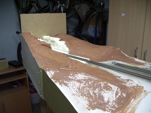 Mit dem Bau des Adapter zum NG Schattenbahnhof wurde begonnen, hier erkennt man auch schon die Höhe des Hintergrundes...