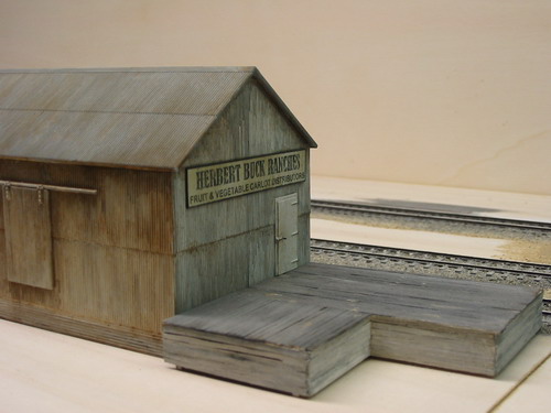 NEU 19. April 2009 Ich habe mit dem Bau des Packing House der Firma Herbert Buck begonnen, das Gebäude ist aus Teilen des Walthers Cornerstone Bausatzes Clayton County Lumber 933-2911 entstanden. Die Holzverladerampen entstande aus Balsaholz streifen...