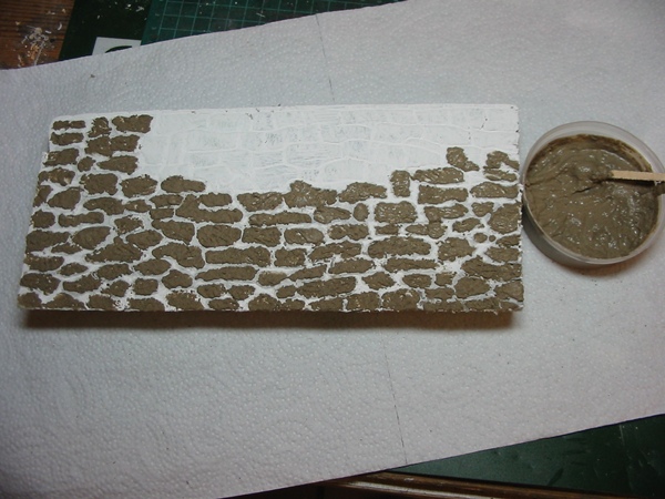spitzen Gegenstand die Fugen eingeritzt und dann für die Steinnachbildung feinen Steinstaub angerührt