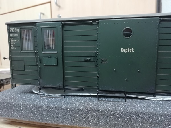 Der Post-Gepäckwagen von KM1 ist ein wunderschönes Modell, was nur einen kleinen Fehler in der Beschriftung