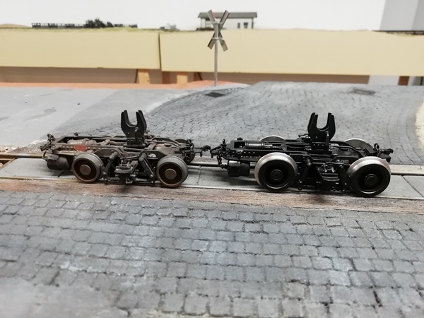 Fremokollegen bin ich zu Finescale Radsätze von Nolte für diesen ursprünglich mit NEM Füßen ausgestatteten Wagen gekommen.