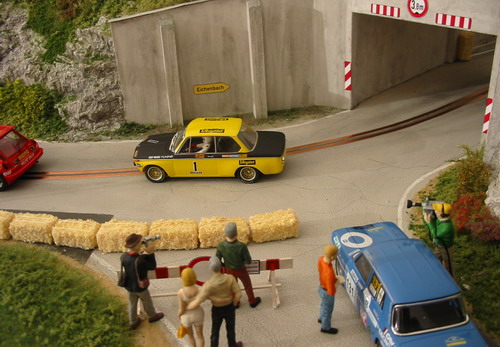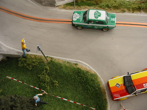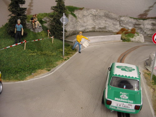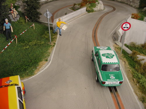 Der Mücken-Gel Simca bekommt angezeigt das sich vor ihm ein viel langsameres Fahrzeug auf der Strecke befindet...