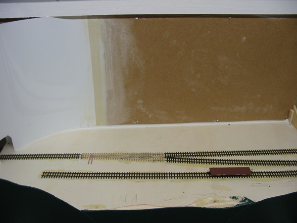 Die Anlagenkästen sind verspachtelt und lackiert, mit dem Gleisbau wurde